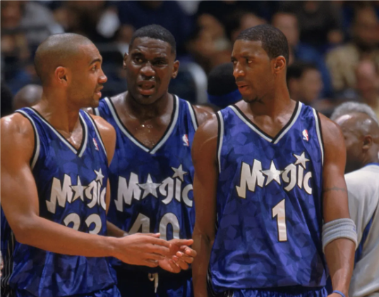魔术曾希望麦迪和希尔组合,复制乔丹+皮蓬的组合。麦迪是得分王,希尔是詹姆斯(三双王),看来很有希望,但这个想法很快就落空了。(毛毛爸爸/仰卧撑)